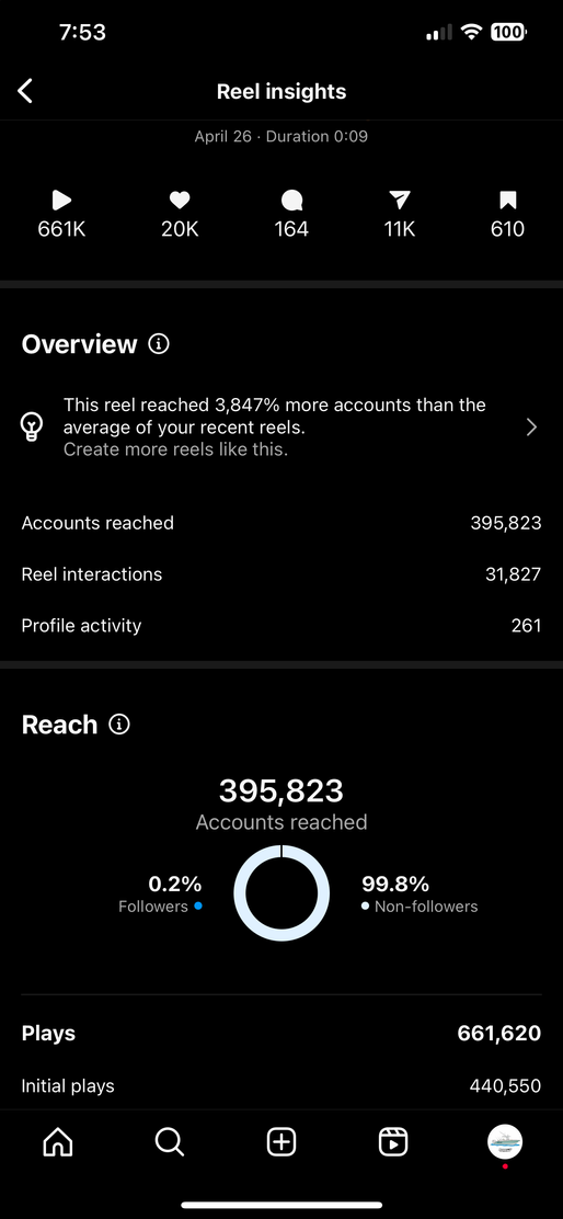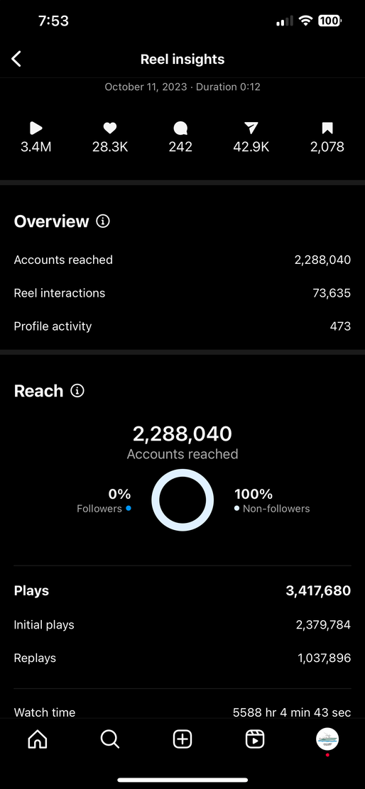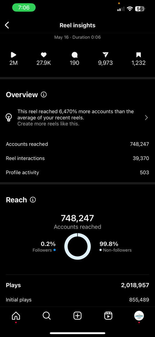 Created a targeted content strategy and interactive posts that resonated well with the audience, driving brand awareness and increasing reel reach by up to 6,470% compared to clients average reach